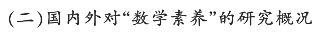 PISA(国际学生评估项目)以成人生活中的重要指标和技能为依据,根据社会生活对个人能力要求而定,测试对象为15周岁的学生。PISA2003将数学素养定义为:个人能够鉴别和理解数学在世界中所起作用的能力;能进行有根据的数学判断的能力,以及作为一个有建设性、关心社会、善于思考的公民为满足个人生活需要而使用和从事数学活动的能力。PISA2012更为直观地表述数学素养,它指的是个人在不同的情境中表达、应用、解释数学的能力,包括通过数学推理、使用数学概念、规则、事实和工具来描述、解释和预测各种现象。在PISA2012中,表达指数学化地表达问题情境;应用指应用数学概念事实、规则及推理;解释指解释、使用并评价数学结果。通过表达、应用、解释这三个过程维度考查学生数学素养。
