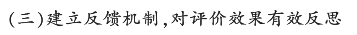 注重对评价效果的反思,提高教学评价的有效性。任何时候,反思都是一种促进自我成长的有效的手段,我们的教学更是如此。教学评价有效性既取决于教学评价设计水平,也取决于对评价效果的反思与改进。在教学设计的每一个环节,都要始终注意不断地收集反馈信息,并随时对设计过程和设计结果进行反思及必要的修改。充分发挥评价的诊断、反馈、改进、激励、强化等功能,促进学生素养提升。