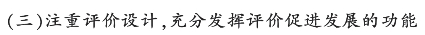 教学评价与教学过程是一体两面,就是说教的过程就是评的过程。在教学设计的每一个环节,都要注意不断地收集、反馈信息,并随时对设计过程和设计结果进行评价及必要的修改。要发挥评价的诊断、反馈、改进、激励、强化等教育发展功能,让学生在课程中找到自己,赏识自己,找到进步的方向。一句话,以评价促进学生不断发展。