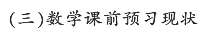 预习不主动。从调查中发现,有很多学生根本不预习,没有预习数学的意识。有学生说,语文要预习的,数学怎么也要预习啊?另外,老师根本不布置数学预习作业,或是只口头上布置一下,没有实质性的预习作业,学生预习了还是没有预习,老师到第二天也基本不问,渐渐地学生也就没有了预习的习惯。