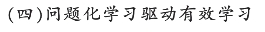 之所以说问题化学习是一种有效学习,是因为问题化学习是主动探索的过程,这个过程是学生对问题求解与探索的过程,也是认知策略与方法获得的过程;其次,问题化学习的过程中,通过问题系统激起学生的认知矛盾和冲突,从而激活学生的思维,使学生不断地发现问题、解决问题,在解决问题中又发现问题,从而获得更为动态的知识,在运用已有经验的基础上获取新知,并实现知识的迁移应用。同时,通过教师对问题系统的优化,形成以学科问题为基础、学生问题为起点、教师问题为引导的问题设计模式,有助于学生形成一种整体建构认知。