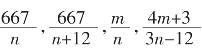 (4)我们初三学生共667人,平均分成n个班,每个班有____人,平均分成(n+12)个班,每个班有____人。