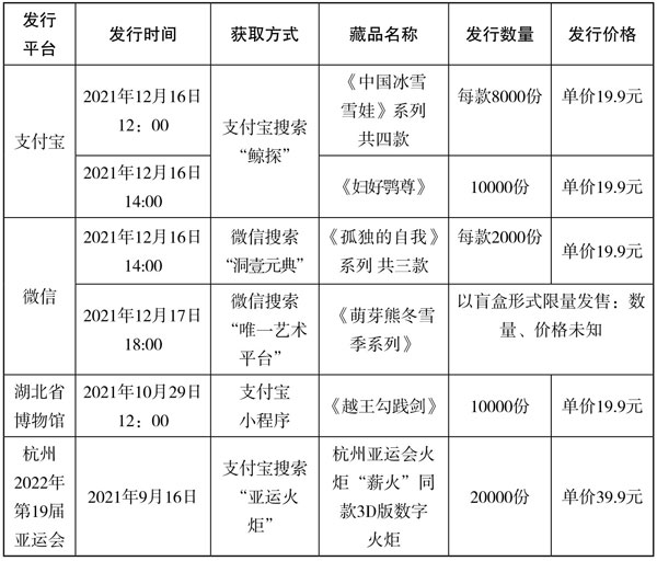 除了天猫,不少企业都推出了数字藏品(见表4-3):