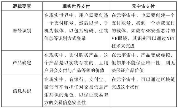 表4-6 现实世界与元宇宙世界的支付逻辑