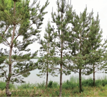 乔木,高可达25米,胸径达80厘米;大树树皮厚,树干下部灰褐色或黑褐色,深裂成不规则的鳞状块片脱落,上部树皮及枝皮黄色至褐黄色,内侧金黄色,裂成薄片脱落;枝斜展或平展,幼树树冠尖塔形,老则呈圆顶或平顶,树冠稀疏;一年生枝淡黄褐色,无毛,二、三年生长呈灰褐色;冬芽褐色或淡黄褐色,长卵圆形,有树脂。针叶2针一束,硬直,常扭曲,长4~9厘米,径1.5~2毫米,先端尖,边缘有细锯齿,两面均有气孔线;横切面半圆形,微扁,皮下层细胞单层,维管束鞘呈横茧状,二维管束距离较远,树脂道6~11个,边生;叶鞘基部宿存,黑褐色。雄球花圆柱状卵圆形,长5~10毫米,聚生新枝下部,长约3~6厘米;雌球花有短梗,淡紫褐色,当年生小球果长约1厘米,下垂。球果卵圆形或长卵圆形,长3~6厘米,径2~3厘米,成熟前绿色,熟时淡褐灰色,熟后开始脱落;中部种鳞的鳞盾多呈斜方形,纵脊横脊显著,肥厚隆起,多反曲,鳞脐呈瘤状突起,有易脱落的短刺;种子黑褐色,长卵圆形或倒卵圆形,微扁,长4.5~5.5毫米,连翅长1.1~1.5厘米;子叶6~7枚,长1.3~2.4厘米;初生叶条形,长1.8~2.4厘米,上面有凹槽,边缘有较密的细锯齿,叶面上亦有疏生齿毛。花期5~6月,球果第二年9~10月成熟。
