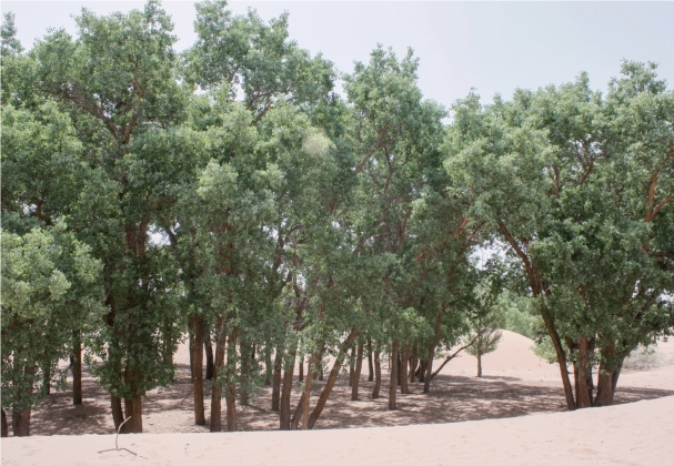 乔木,高10~15米,稀灌木状。树皮淡灰褐色,下部条裂;萌枝细,圆形,光滑或微有绒毛。芽椭圆形,光滑,褐色,长约7毫米。苗期和萌枝叶披针形或线状披针形,全缘或不规则的疏波状齿牙缘;成年树小枝泥黄色,有短绒毛或无毛,枝内富含盐量,嘴咬有咸味。叶形多变化,卵圆形、卵圆状披针形、三角状卵圆形或肾形,先端有粗齿牙,基部楔形、阔楔形、圆形或截形,有2腺点,两面同色;叶柄微扁,约与叶片等长,萌枝叶柄极短,长仅1厘米,有短绒毛或光滑。雄花序细、圆柱形,长2~3厘米,轴有短绒毛,雄蕊15~25,花药紫红色,花盘膜质,边缘有不规则齿牙;苞片略呈菱形,长约3毫米,上部有疏齿牙;雌花序长约2.5厘米,果期长达9厘米,花序轴有短绒毛或无毛,子房长卵形,被短绒毛或无毛,子房柄约与子房等长,柱头3,2浅裂,鲜红或淡黄绿色。蒴果长卵圆形,长10~12毫米, 2~3瓣裂,无毛。花期5月,果期7~8月。
