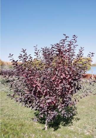 灌木或小乔木,高可达8米;多分枝,枝条细长,开展,暗灰色,有时有棘刺;小枝暗红色,无毛;冬芽卵圆形,先端急尖,有数枚覆瓦状排列鳞片,紫红色,有时鳞片边缘有稀疏缘毛。叶片椭圆形、卵形或倒卵形,极稀椭圆状披针形,长(2)3~6厘米,宽2~4(6)厘米,先端急尖,基部楔形或近圆形,边缘有圆钝锯齿,有时混有重锯齿,上面深绿色,无毛,中脉微下陷,下面颜色较淡,除沿中脉有柔毛或脉腋有髯毛外,其余部分无毛,中脉和侧脉均突起,侧脉5~8对;叶柄长6~12毫米,通常无毛或幼时微被短柔毛,无腺;托叶膜质,披针形,先端渐尖,边有带腺细锯齿,早落。花1朵,稀2朵;花梗长1~2.2厘米,无毛或微被短柔毛;花直径2~2.5厘米;萼筒钟状,萼片长卵形,先端圆钝,边有疏浅锯齿,与萼片近等长,萼筒和萼片外面无毛,萼筒内面有疏生短柔毛;花瓣白色,长圆形或匙形,边缘波状,基部楔形,着生在萼筒边缘;雄蕊25~30,花丝长短不等,紧密地排成不规则2轮,比花瓣稍短;雌蕊1,心皮被长柔毛,柱头盘状,花柱比雄蕊稍长,基部被稀长柔毛。核果近球形或椭圆形,长宽几相等,直径2~3厘米,黄色、红色或黑色,微被蜡粉,具有浅侧沟,黏核;核椭圆形,先端急尖,浅褐带白色,表面平滑或粗糙或有时呈蜂窝状,背缝具沟,腹缝有时扩大具2侧沟。花期4月,果期8月。