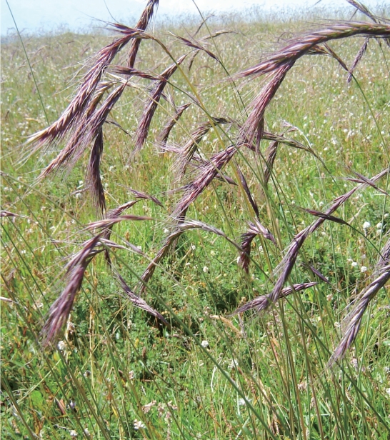 多年生草本植物,秆疏丛生,秆直立,较细弱,高40~60厘米,基部呈膝曲状。叶鞘光滑无毛;叶片多少内卷,长3~10(19)厘米,宽仅2毫米,两面均无毛,或基生叶上面有时可生柔毛。穗状花序较紧密,曲折而下垂,长5~8厘米;小穗多少偏于1侧,成熟后变成黑紫 色,长8~10毫 米,含2~3小花,仅1~2小花发育;颖甚小,几等长,长2~4毫米,狭长圆形或披针形,先端渐尖,稀可具长约1毫米的小尖头,具1~3脉,主脉粗糙,侧脉不显著;外稃披针形,全部密生微小短毛,具5脉,脉在基部不甚明显,第一外稃长7~8毫米,顶端延伸成芒,芒粗糙,反曲或展开,长10~17毫米;内稃与外稃等长,先端钝圆,脊上具纤毛,其毛接近基部渐不显。