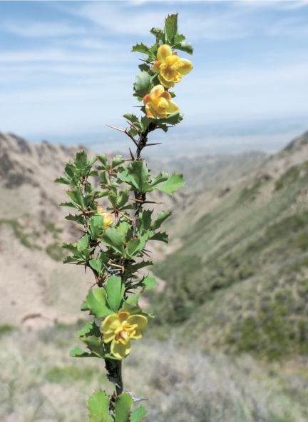 落叶灌木,高0.5~1米。老枝暗灰色,无毛,幼枝被微柔毛,具条棱,带红褐色;茎刺3~5~7分叉,细弱,长3~11毫米,有时刺基部增宽略呈叶状。叶纸质,倒卵形,倒披针形或倒卵状长圆形,长1~2.5厘米,宽5~8毫米,先端圆钝,具刺尖,基部楔形,上面深绿色,背面淡黄绿色,不被白粉,两面中脉、侧脉和网脉明显隆起,侧脉4~5对,斜上至近叶缘联结,叶缘有时略呈波状,每边具4~7硬直刺状牙齿;叶柄长3~5毫米。花单生;花梗长7~12毫米,无毛;萼片2轮,外萼片长圆状卵形,长约4毫米,宽2毫米,内萼片倒卵形,长约4.5毫米,宽约2.5毫米;花瓣倒卵形,长约4.5毫米,宽约2.5毫米,先端浅缺裂,基部具2枚分离的腺体;雄蕊长2.5~3毫米,药隔先端平截;胚珠5~8枚。浆果倒卵形,红色,长7~9毫米,直径6~7毫米,顶端无宿存花柱,不被白粉。花期5~7月,果期8~9月。