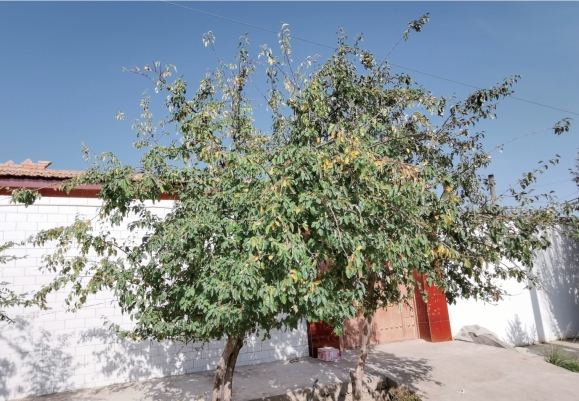 灌木至小乔木,高3~6米;小枝圆柱形,嫩时具长柔毛,以后脱落,老时紫褐色或暗褐色,有稀疏褐色皮孔;冬芽卵形,先端急尖,外被柔毛,紫褐色。叶片形状变异很大,通常卵形至长椭圆形,长3~8厘米,宽1~5厘米,先端急尖,基部宽楔形或近心形,边缘有圆钝锯齿或紧贴锯齿,常具不规则3~5深裂,亦有不裂,上面有疏生柔毛,下面沿中脉及侧脉较密;叶柄 长1~3厘 米,具 短 柔毛;托叶披针形,先端渐尖,全缘,具疏生柔毛。花3~6朵,近似伞形排列,花梗长1.8~2.5厘米,稍具长柔毛;苞片膜质,线形,内面具柔毛,早落;花直径约2~2.5厘米;萼筒钟状,外面有绒毛;萼片三角披针形或狭三角形,先端渐尖,全缘,长3~4毫米,外面有白色绒毛,内面较密;花瓣卵形或长椭倒卵形,长8~11毫米,宽6~7毫米,基部有短爪,表面有疏生柔毛或无毛,白色;雄蕊约20,花丝长短不等,长约花瓣之三分之二;花柱3,稀4~5,基部联合,无毛,较雄蕊稍短。果实倒卵形或长椭圆形,直径1~1.3厘米,黄色有红晕,无石细胞;萼片脱落;果梗长3~4厘米,无毛。花期4~5月,果期9月。