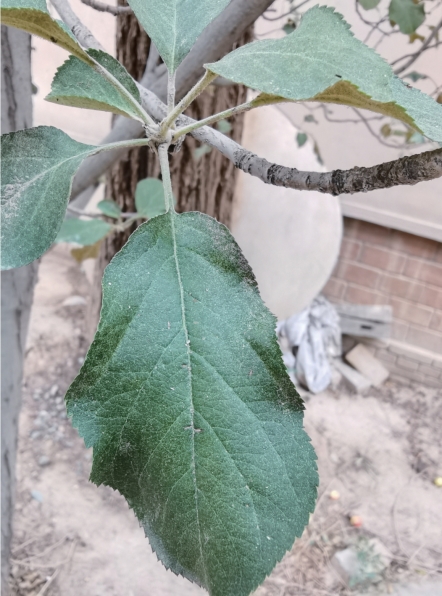 小乔木,高4~6米;小枝粗壮,圆柱形,嫩枝密被柔毛,老枝暗紫褐色,无毛,有稀疏浅色皮孔;冬芽卵形,先端急尖,初时密被柔毛,逐渐脱落,灰红色。叶片卵形或椭圆形,长5~11厘米,宽4~5.5厘米,先端急尖或渐尖,基部圆形或宽楔形,边缘有细锐锯齿,上面有短柔毛,逐渐脱落,下面密被短柔毛;叶柄长1.5~5厘米,具短柔毛;托叶小,膜质,披针形,早落。伞房花序,具花4~7朵,集生在小枝顶端;花梗长1.5~2厘米,密被柔毛;花直径3~4厘米;萼筒钟状,外面密被柔毛;萼片三角披针形,长4~5毫米,先端渐尖,全缘,内外两面密被柔毛,萼片比萼筒稍长;花瓣倒卵形或长圆倒卵形,长8~13毫米,宽4~7毫米,基部有短爪,淡粉色;雄蕊17~20,花丝长短不等,比花瓣短;花柱4(~5),基部具长绒毛,比雄蕊较长。果实卵形或近球形,直径4~5厘米,黄色或红色,先端渐狭,不具隆起,基部陷入,宿存萼肥厚隆起。花期4~5月,果期8~9月。