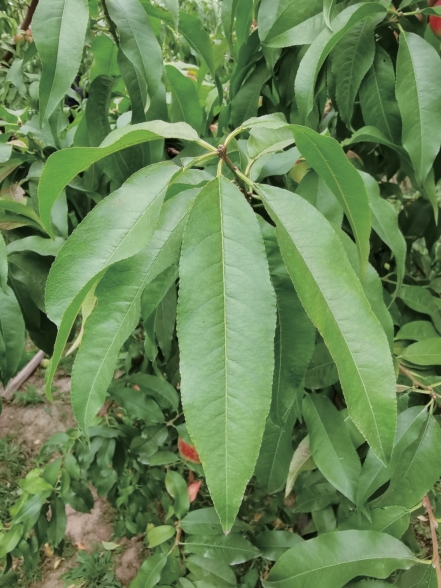 乔木,树冠开展;树皮暗红褐色,老时粗糙呈鳞片状;小枝细长,无毛,有光泽,绿色,向阳处转变成红色,具大量小皮孔;冬芽圆锥形,顶端钝,外被短柔毛,常2~3个簇生,中间为叶芽,两侧为花芽。叶片长圆披针形、椭圆披针形或倒卵状披针形,长7~15厘米,宽2~3.5厘米,先端渐尖,基部宽楔形,上面无毛,下面在脉腋间具少数短柔毛或无毛,叶边具细锯齿或粗锯齿,齿端具腺体或无腺体;叶柄粗壮,长1~2厘米,常具1至数枚腺体,有时无腺体。花单生,先于叶开放,直径2.5~3.5厘米;花梗极短或几无梗;萼筒钟形,被短柔毛,稀几无毛,绿色而具红色斑点;萼片卵形至长圆形,顶端圆钝,外被短柔毛;花瓣长圆状椭圆形至宽倒卵形,粉红色,罕为白色;雄蕊20~30,花药绯红色;花柱几与雄蕊等长或稍短;子房被短柔毛。果实卵形或宽椭圆形,直径5~12厘米,果面黄色至橙黄色,常在向阳面具红晕,外面密被短柔毛,稀无毛,腹缝明显,果梗短而深入果洼;果肉黄色至橙黄色,多汁有香味,酸甜;核大,黏核,椭圆形或近圆形,两侧扁平,顶端渐尖,表面具纵、横沟纹和孔穴;种仁味苦,稀味甜。花期4~5月,果实成熟期8月下旬~9月上旬。