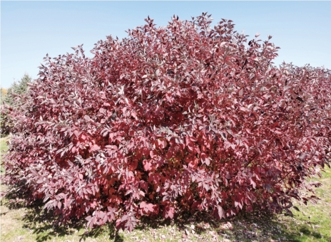 灌木,高达3米;树皮紫红色;幼枝有淡白色短柔毛,老枝红白色,散生灰白色圆形皮孔及略为突起的环形叶痕。冬芽卵状披针形,长3~6毫米,被灰白色或淡褐色短柔毛。叶对生,纸质,椭圆形,稀卵圆形,长5~8.5厘米,宽1.8~5.5厘米,先端突尖,基部楔形或阔楔形,边缘全缘或波状反卷,上面暗绿色,有极少的白色平贴短柔毛,下面粉绿色,被白色贴生短柔毛,有时脉腋有浅褐色髯毛,中脉在上面微凹陷,下面凸起,侧脉(4~)5(~6)对,弓形内弯,在上面微凹下,下面凸出,细脉在两面微显明。伞房状聚伞花序顶生,较密,宽3厘米,被白色短柔毛;总花梗圆柱形,长1.1~2.2厘米,被淡白色短柔毛;花小,白色或淡黄白色,长5~6毫米,直径6~8.2毫米,花萼裂片4,尖三角形,长约0.1~0.2毫米,短于花盘,外侧有疏生短柔毛;花瓣4,卵状椭圆形,长3~3.8毫米,宽1.1~1.8毫米,先端急尖或短渐尖,上面无毛,下面疏生贴生短柔毛;雄蕊4,长5~5.5毫米,着生于花盘外侧。核果长圆形,微扁,长约8毫米,直径5.5~6毫米,成熟时乳白色或蓝白色,花柱宿存;核棱形,侧扁,两端稍尖呈喙状,长5毫米,宽3毫米,每侧有脉纹3条花期6~7月;果期8~10月。