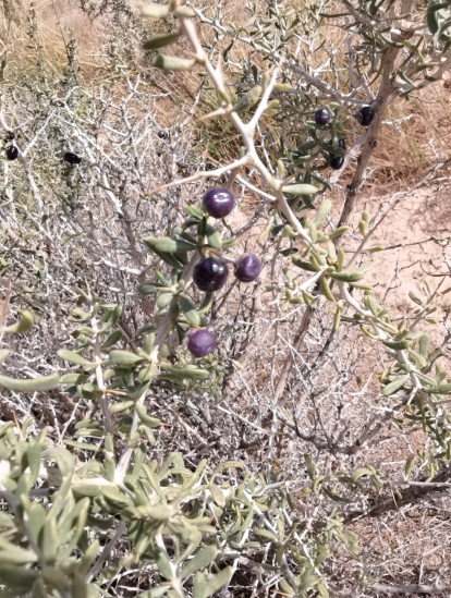 多棘刺灌木,高20~150厘米,多分枝;分枝斜升或横卧于地面,白色或灰白色,坚硬,常成之字形曲折,有不规则的纵条纹,小枝顶端渐尖成棘刺状,节间短缩,每节有长0.3~1.5厘米的短棘刺;短枝位于棘刺两侧,在幼枝上不明显,在老枝上则成瘤状,生有簇生叶或花、叶同时簇生,更老的枝则短枝成不生叶的瘤状凸起。叶2~6枚簇生于短枝上,在幼枝上则单叶互生,肥厚肉质,近无柄,条形、条状披针形或条状倒披针形,有时成狭披针形,顶端钝圆,基部渐狭,两侧有时稍向下卷,中脉不明显,长0.5~3厘米,宽2~7毫米。花1~2朵生于短枝上;花梗细瘦,长0.5~1厘米。花萼狭钟状,长4~5毫米,果时稍膨大成半球状,包围于果实中下部,不规则2~4浅裂,裂片膜质,边缘有稀疏缘毛;花冠漏斗状,浅紫色,长约1.2厘米,筒部向檐部稍扩大,5浅裂,裂片矩圆状卵形,长约为筒部的1/3~1/2,无缘毛,耳片不明显;雄蕊稍伸出花冠,着生于花冠筒中部,花丝离基部稍上处有疏绒毛,同样在花冠内壁等高处亦有稀疏绒毛;花柱与雄蕊近等长。浆果紫黑色,球状,有时顶端稍凹陷,直径4~9毫米。种子肾形,褐色,长1.5毫米,宽2毫米。花果期5~10月。