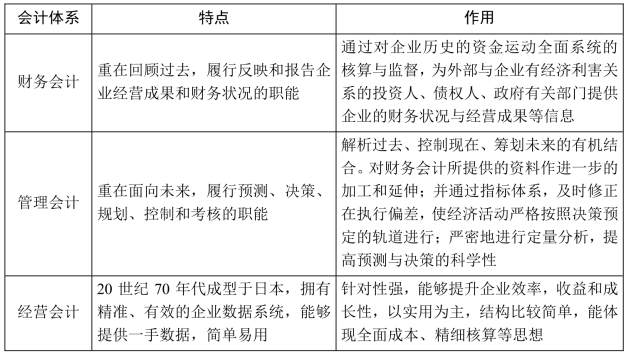 经营会计是日本企业在经营领域奉献给全世界最伟大的发明,与先前的两种会计系统相比,具有明显的进步性和优势,参见表1-2。