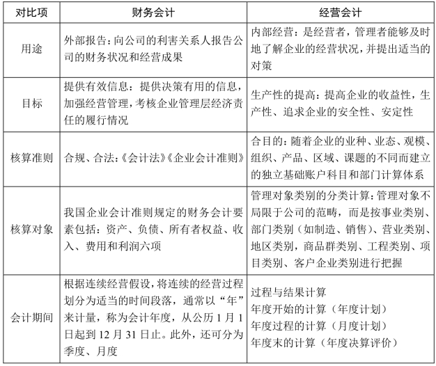 3.财务会计与经营会计的区别