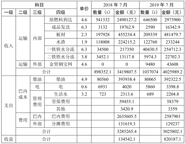 阿米巴报表显示,原料运输微巴“循环改进、持续提升”后的原料运输微巴的盈利能力得到了大幅提高。2019年7月比2018年7月的利润增加66.6万元。