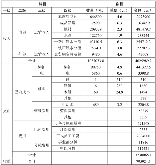 (1)运用阿米巴经营“分、算、奖”原则,提高效率,通过增加运量,提高巴体收入。