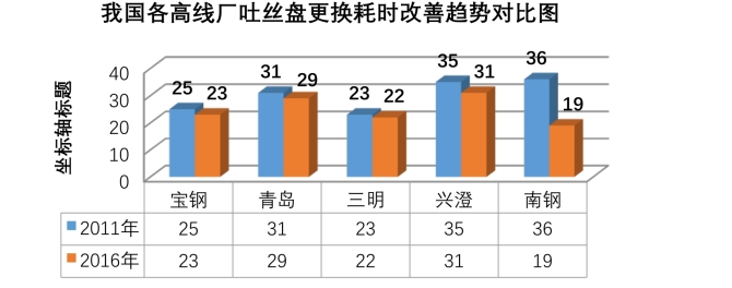 图2-7 我国各高线厂吐丝盘更换耗时改善趋势对比图