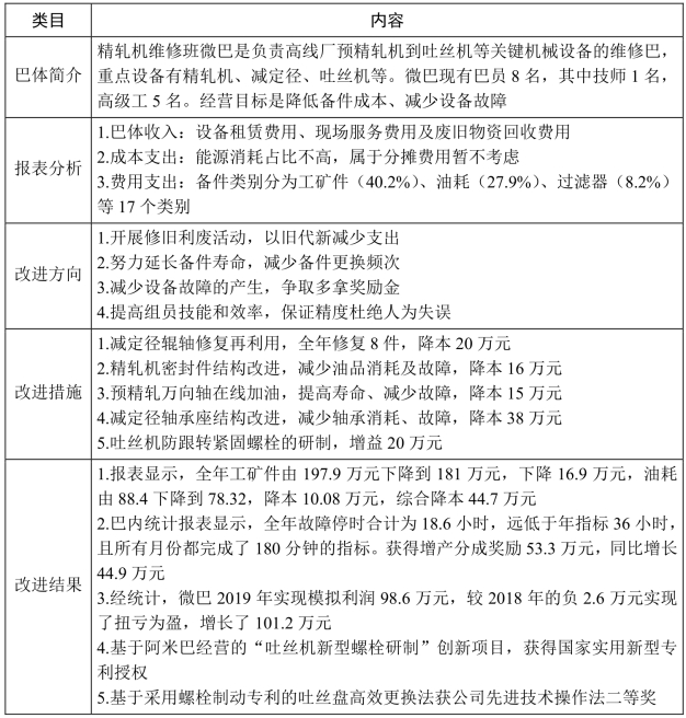 案例2-10、案例2-11都是按照“巴体简介、报表分析、改进方向、改进措施、改进结果”框架结构模式,总结提炼的成果,主题突出,以供研习。