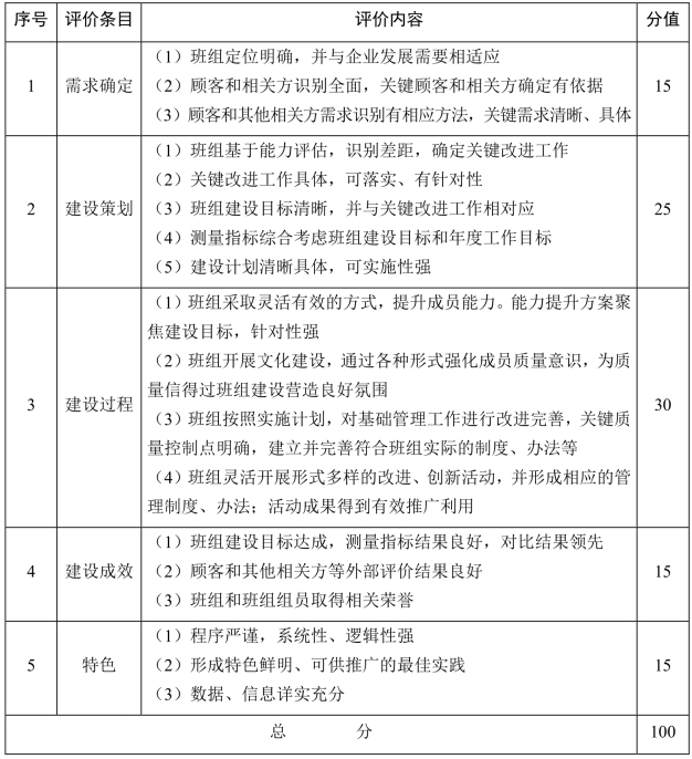 应依据质量信得过班组建设评价表,参见表5-3。对班组建设过程及其建设成果进行评价。