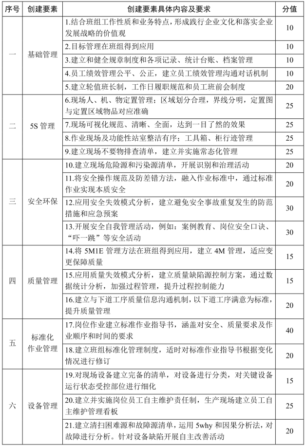 以建设“标杆、典范”班组为目标,标杆班组也是对班组建设结果评比出的先进或优秀班组的一种命名。但其特点更加聚焦,各项指标是量化可比,且是所有比较者中最优秀的。经综合评价后,授予标杆班组,有效期不多于3年。