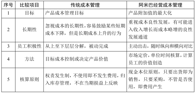 表8-2 传统成本管理与阿米巴经营的成本管理之比较