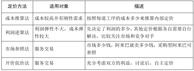 阿米巴经营会计常用的几种内部定价方法。(如表8-4)