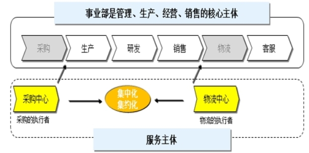 在事业部大巴下面,根据生产工艺流程,设立生产中巴,作为直接的生产经营单位,原生产厂的职能全部上收,生产中巴直接对接事业部大巴,使其将精力集中在内部经营;根据工序特点,设立车间级的小巴,小巴再根据工序节点和原来的班组,划分出微巴。同时,事业部内部成立相关职能处室,如营销中巴,强调对市场营销管理、产品销售以及与总部协同等;生产中巴,从总部承接本事业部内生产计划(物流)管理、生产工序成本、存货控制等;研发中巴,采取“用研产销”为一体化模式,实施精准研发、协同创新;设备中巴是本事业部设备的经营者,负责设备的日常维护、点检、定修、润滑、大中修、技改等工作;安全能环中巴负责事业部安全、环保的日常管理工作;设备维修、安全环保统一归口后,各中巴属地运作;综合处负责事业部内人事、行政等工作,也承担市场信息与价格监管等职责。集团总部只保留公司级生产运行指挥协调、铁钢平衡、资源平衡等职能。