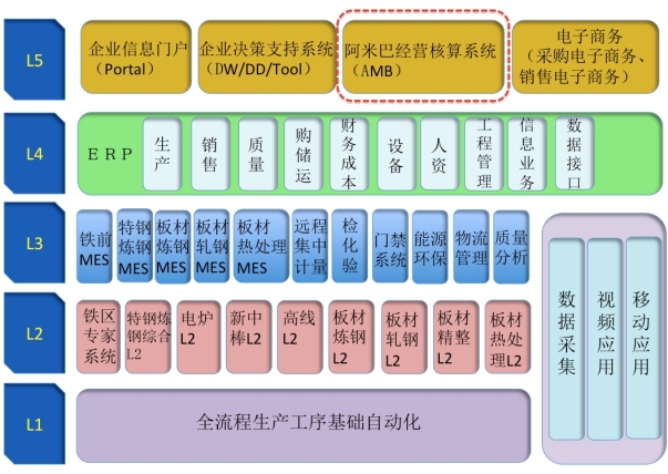 为建立经营决策系统,大力推进日清日结和阿米巴日报表核算,以“事业部大巴、生产厂中巴、以及车间小巴和班组微巴”为四级核算单元,层层分解指标,责任落实到巴组织。通过南钢的ERP、MES、EMS等系统,建立生产经营的信息采集、存储、分析、管理等系统功能,推进生产经营数据可视化及报表化。