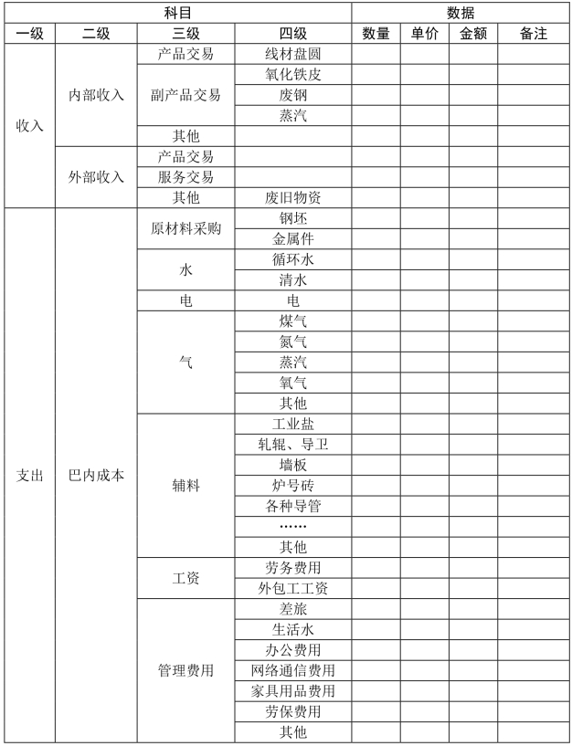 原料小巴依据其职责,为生产巴提供钢坯修订服务,并按照吨钢单价收取服务费,形成巴组织的收入。其支出主要为巴内成本和费用。