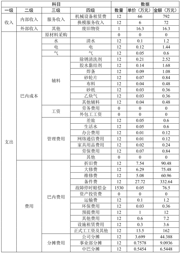 表13-4 南钢集团某精轧机维修微巴阿米巴报表科目构成