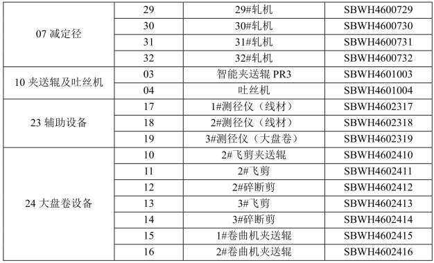 表13-3 南钢集团某精轧机维修微巴设备清单一览表