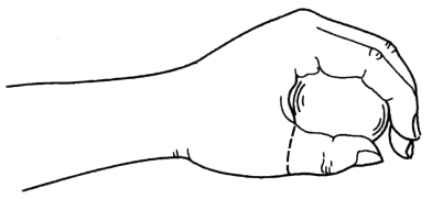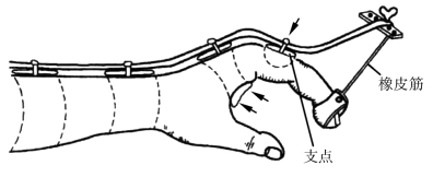 再造指术后5~6 周,即一般患者自行主动功能锻炼1~2 周后,即可由医生尤其是功能康复医生,协助患者进行被动的掌指关节和指关节的伸屈活动功能练习,也是先活动指间关节,后掌指关节,由远侧到近侧活动每一关节,直至掌指关节。可用手固定近侧掌指关节和近侧端各指间关节,用另一手捏住患指的远侧指间关节,缓慢而轻柔的做伸屈活动,活动幅度亦由小到大,循序渐进,不可操之过急,更不可强搬硬屈,以患者能忍受为宜,1~2 次/d。也可在被动活动后,患者休息几个小时,再行自主活动锻炼;或利用弹力橡皮支具及握橡皮球方法,持续进行功能锻炼。如能配合外敷活血化瘀、舒筋软疤、促进循环、加快愈合的中药制剂,康复效果更好,见(图5-1)。