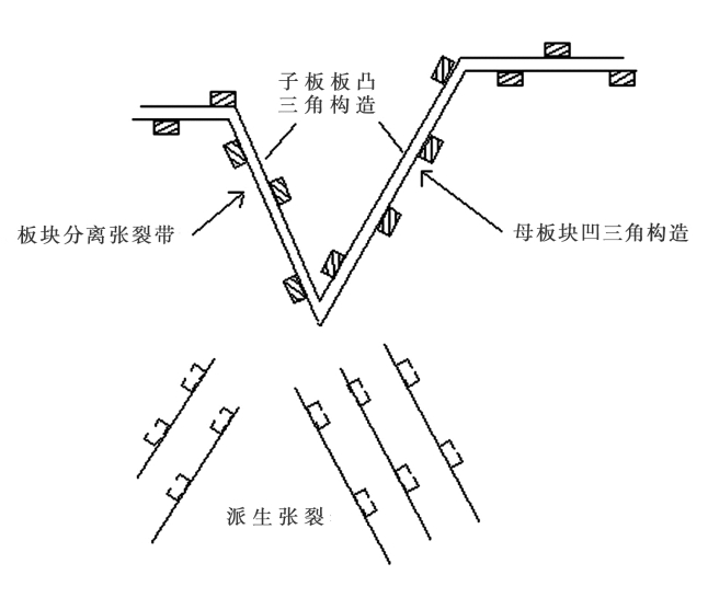 华北板块在早石炭世末与扬子板块分离,其间隔着特提斯海。早三叠世末,两个板块又碰撞对接,现在保留下来的碰撞对接带基本上反映出当时分离构造的形态——从秦岭向东,沿伏牛山转向东南,经大别山汇交到郯庐断裂带,顺北北东向的郯庐断裂带到苏鲁交界地带,又沿江苏北部向东延到东海,在华北板块构成了一个向南突出的三角形,反映出华北板块向南突出的原子板块凸三角构造的形态。而扬子板块构成了一个向南凹进的三角形,显示出原母板块凹三角构造的形态。由于两个板块在分离时的拉张力,在扬子板块上,从赣东北、鄱阳湖一带到福建,留下了一系列北西—南东向的张扭性断裂带,这些张扭性断裂带的延伸方向与大别山的走向基本一致。应当还有一组北北东走向的张裂带存在,但由于后来的华夏系与新华夏系构造的发育,这些断裂带已被改造而区分不出来了。在板块分离构造刚形成时,并不存在郯庐断裂带。从泥盆纪到二叠纪,广东东部、福建到浙江一带就一直是隆起区,只是浙北、江苏一带二叠纪时接受了海相沉积,板块分离时,是沿该隆起带的西部边缘分离的。板块分离后,苏皖一带成为扬子板块向北伸出的半岛。早三叠世末扬子板块与华北板块碰撞对接时,才进一步发展成现在的郯庐断裂带。关于郯庐断裂带,将在以后的构造问题讨论中进一步探讨。