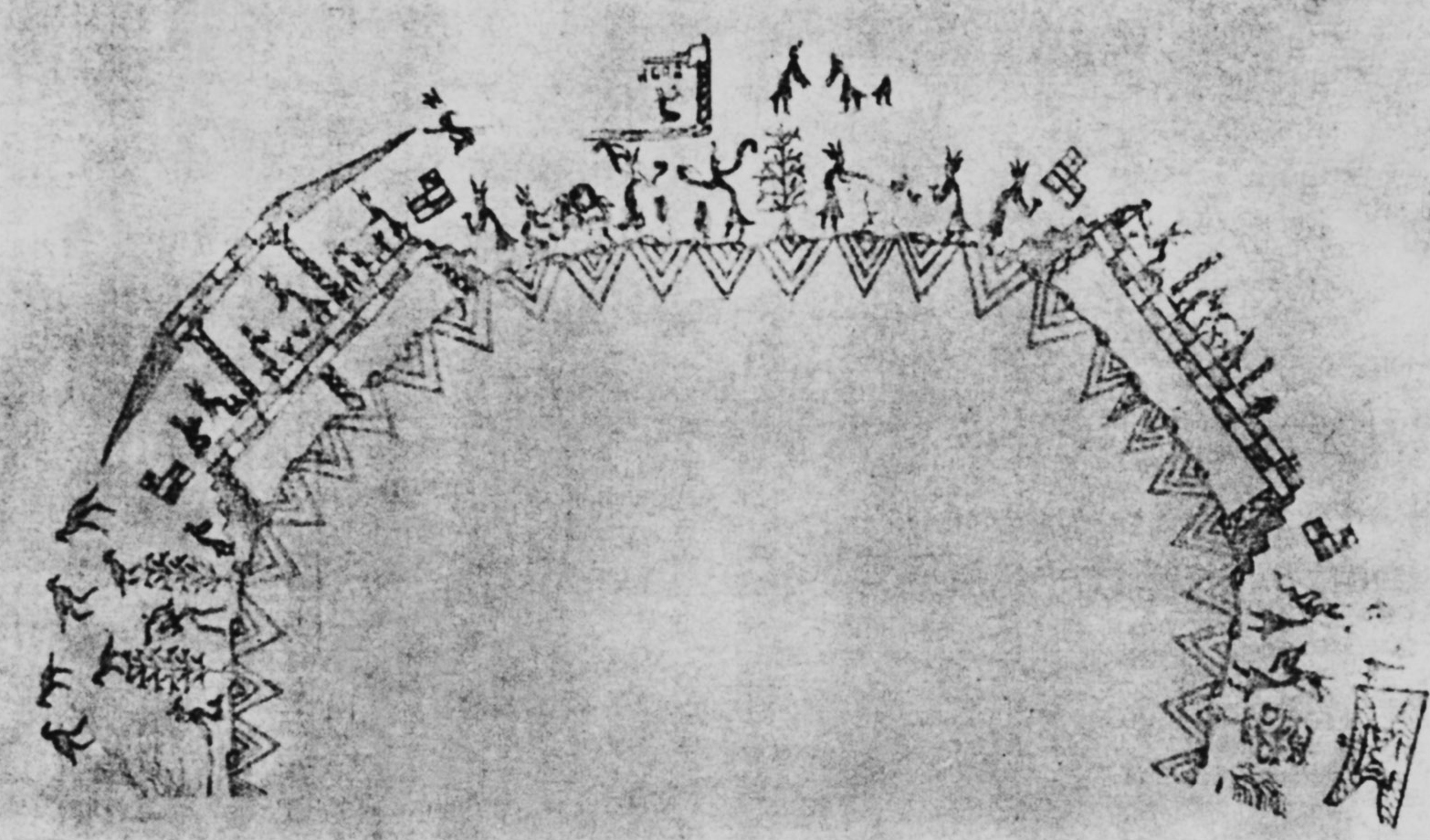 图二十一 刻纹燕射画像椭杯内部周围画像(摹本)