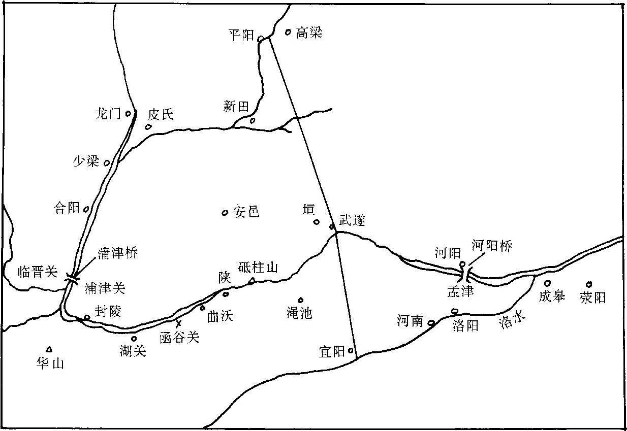 图二十三 蒲津桥、河阳桥与武遂(通道)位置图