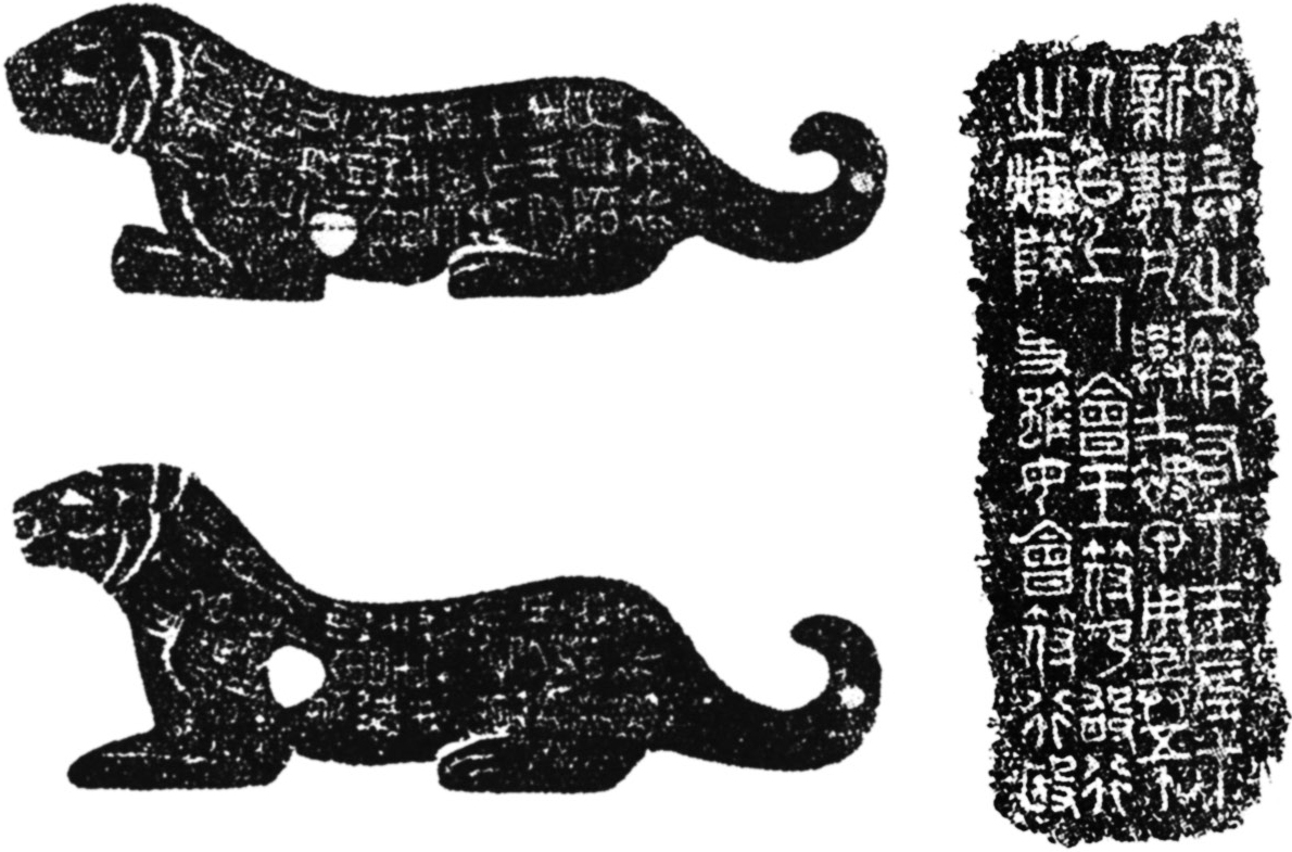 “玺”“符”制度的建立 第三,是这时已建立了公文用“玺”(官印)和发兵用“符”(虎符)的制度。春秋后期已有用玺来封的文书,即所谓“玺书”(《左传》襄公二十九年、《国语·鲁语下》)。到战国时,无论下命令或来往公文,已必须用玺来封泥[1],作为凭信,否则便不能生效。所以公元前二三八年,秦国长信侯嫪毐作乱,想征发县卒和卫卒,就是假造了秦王的御玺和太后的玺来行文征发的(《史记·秦始皇本纪》始皇九年)。虎符作伏虎形,上有铭文,分为两半,底有合榫,右半存在国王处,左半发给将领。这时军队的调发,必须有存在国王处的右半个虎符来会合,作为凭信,否则便不得调发。所以魏国信陵君救赵时,想要夺取将军晋鄙所带的军队前往救赵,非先窃取存在魏王处的半个虎符和假造命令,是不可能夺得晋鄙所带军队的指挥权的(《史记·信陵君列传》)。秦国曾明确地规定:“甲兵之符”,右半归王掌握,左半归将领掌握。凡用兵五十人以上的,必须会合王符。如果外敌有侵入,边塞有烽火,虽没有王符会合,也可机动从事(据杜虎符和新郪虎符铭文)。与“符”同样性质的还有“节”。“节”原用竹节制成,这时多数用青铜铸成,上有铭文,常常几枚合成圆形的竹节状,作为通行的证件。有了这种严密的制度,大权也就集中于国君了。