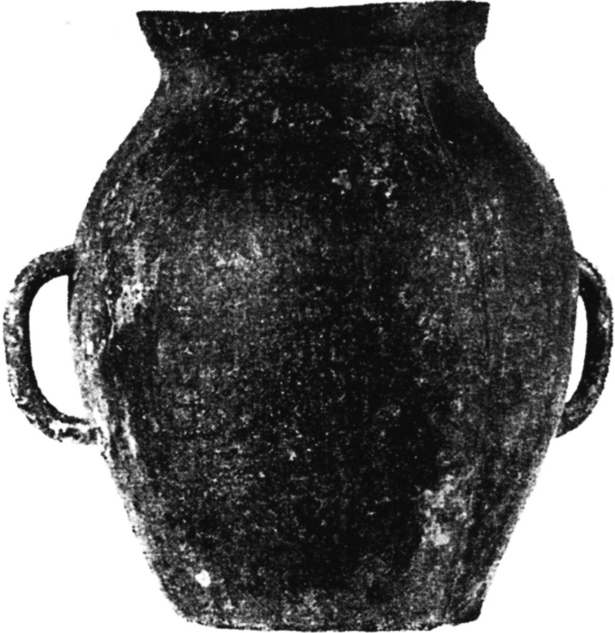 这釜和陈纯釜、左关同是一八五七年山东胶县灵山卫出土。《两周金文辞大系图录》和《齐量》(上海博物馆一九五九年编印)著录。现藏中国历史博物馆。高三十八点五厘米,口径二十二点三厘米,腹径三十一点八厘米,底径十九厘米。实测容水二万零四百六十毫升。腹壁刻有铭文九行,是说子禾子命令某某往告陈得,左关釜以仓廪之釜为标准,关