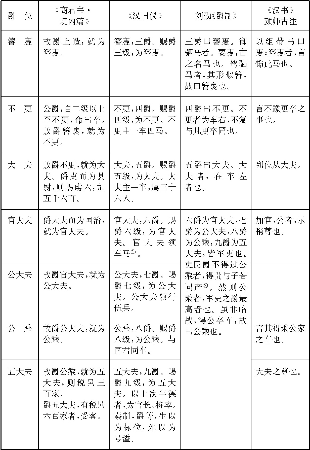 (二)在大夫中有长大夫、上大夫、中大夫等。例如在魏国,吴起做西河守时,奖励军功,曾赏人为长大夫(《吕氏春秋·慎小篇》),或作国大夫(《韩非子·内储说上篇》)。后来须贾曾为魏的中大夫(《史记·范雎列传》)。在赵国,蔺相如做过上大夫(《史记·蔺相如列传》)。在齐国,淳于髡、田骈、接子、慎到、环渊等都曾列为上大夫(《史记·孟子荀卿列传》)。此外魏、赵都有和秦二十等爵第九级相同的五大夫(《战国策·魏策四》、《赵策三》,《吕氏春秋·无义篇》)。