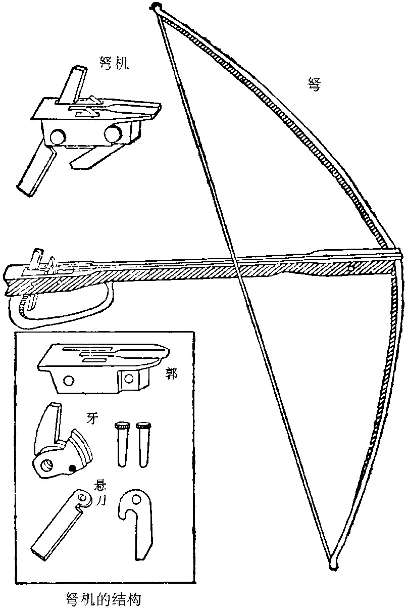 图四十四 弩和弩机的结构图