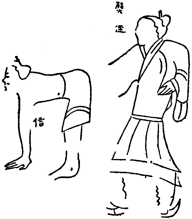 图六十二 帛画导引图中的“信”(伸)和“熊经”(长沙马王堆汉墓出土)