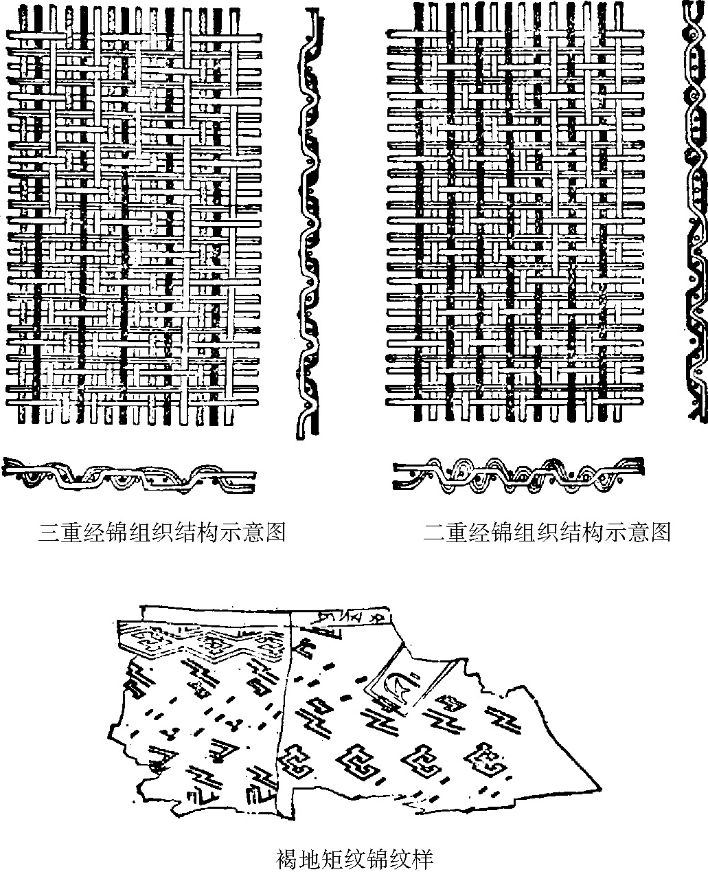 图八十二 长沙左家塘楚墓出土锦的纹样和结构示意图