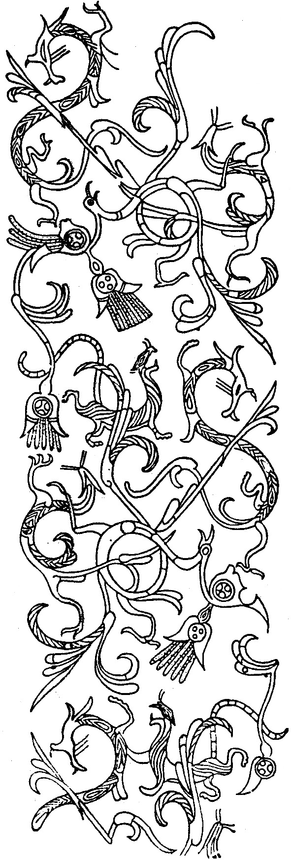 图八十四 湖北江陵马山楚墓出土凤斗龙虎绣纹样