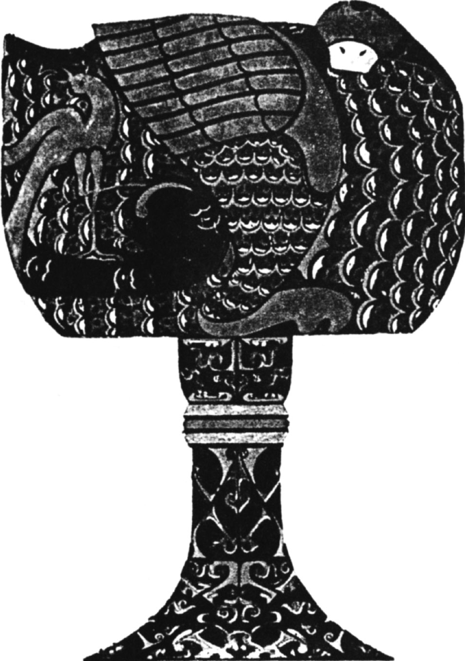 湖南长沙出土楚国漆器。这是俯视图。采自杨宗荣编《战国绘画资料》,中国古典艺术出版社一九五七年版。