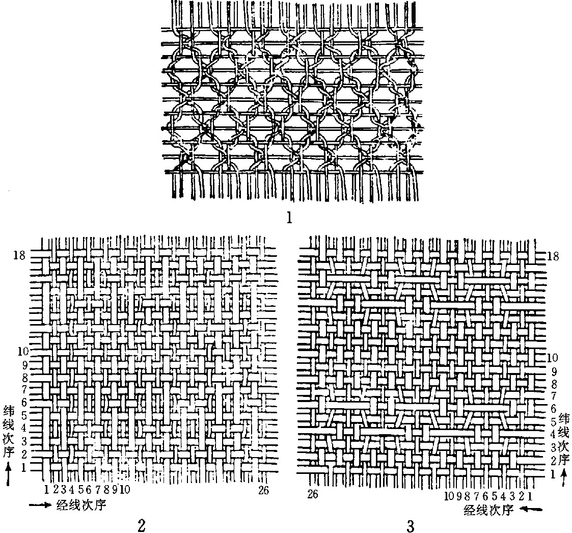 图八十三 湖北江陵马山楚墓出土素罗、彩条纹绮结构示意图