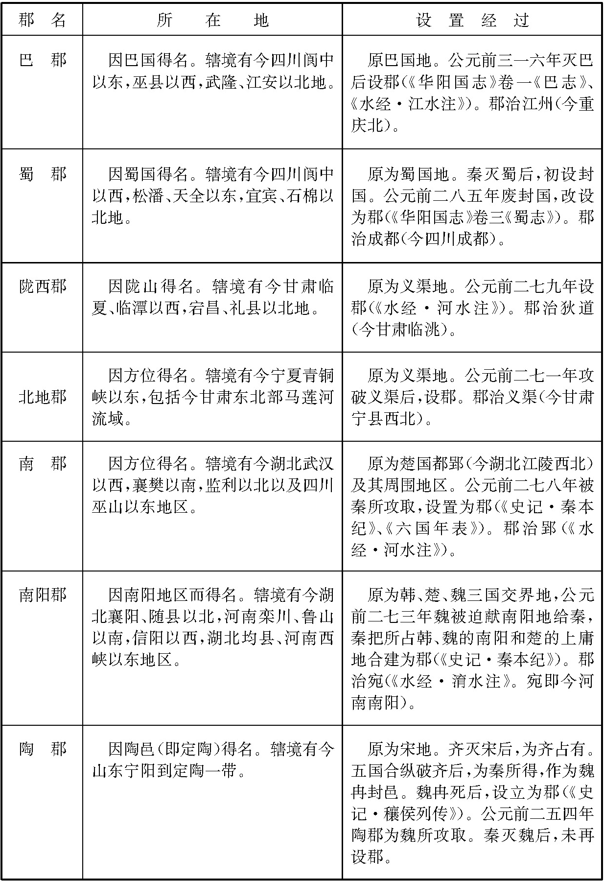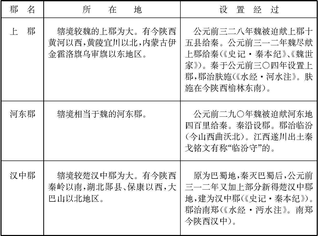 (六)秦国设置的郡