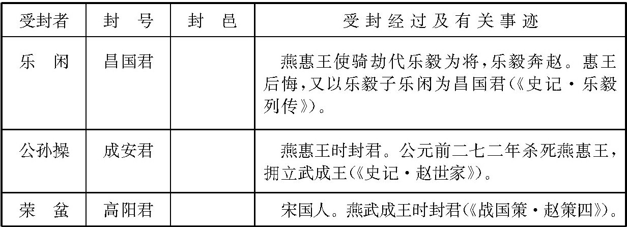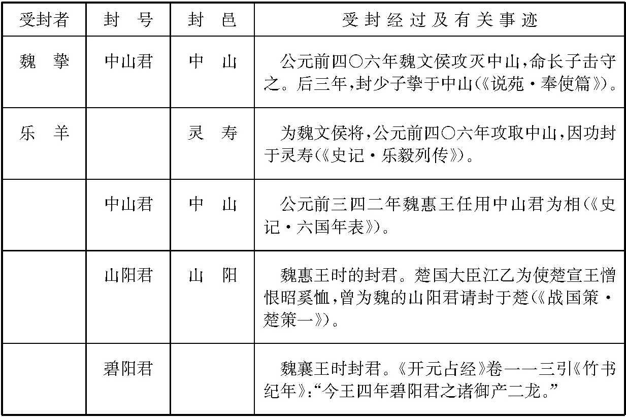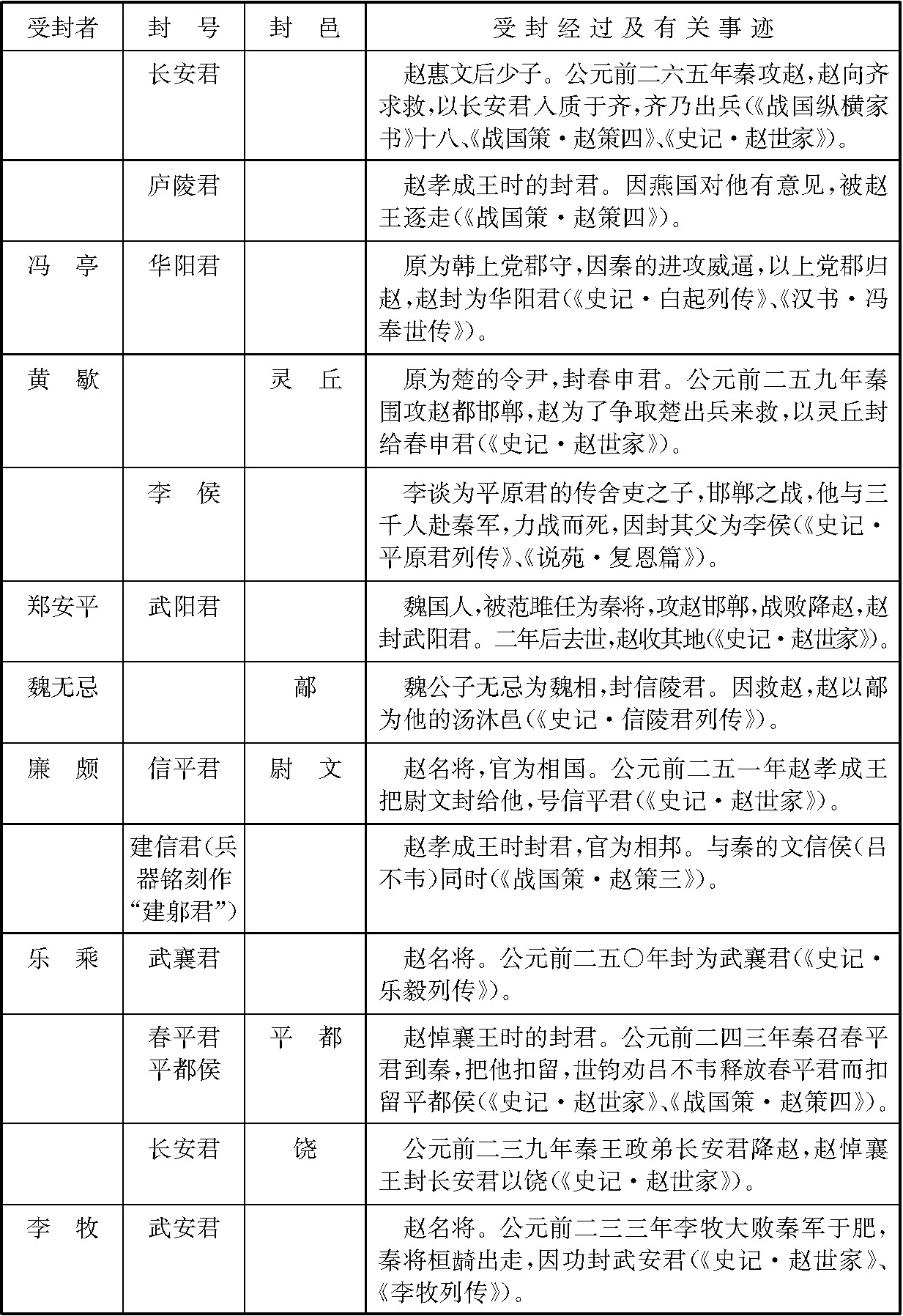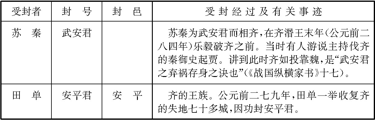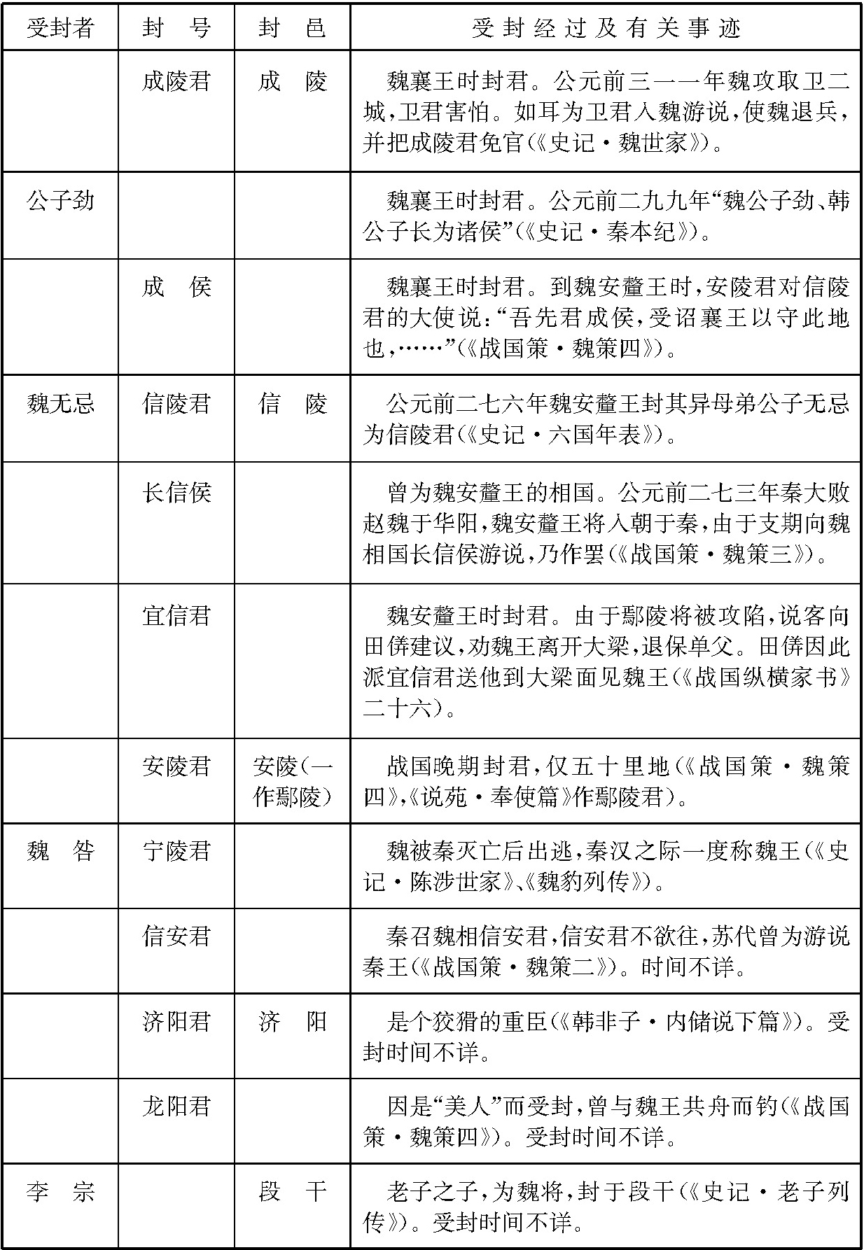 战国时代各国的封君,由于史料不充分,我们所能了解的,比较零星。兹列表如下: