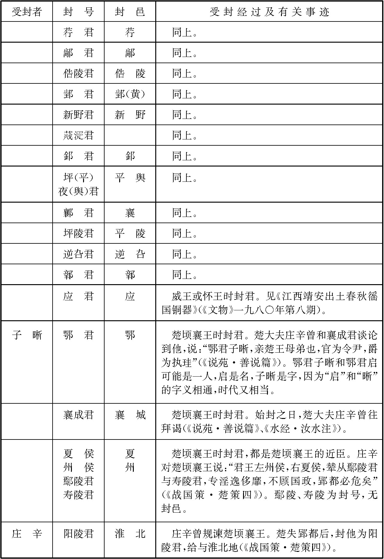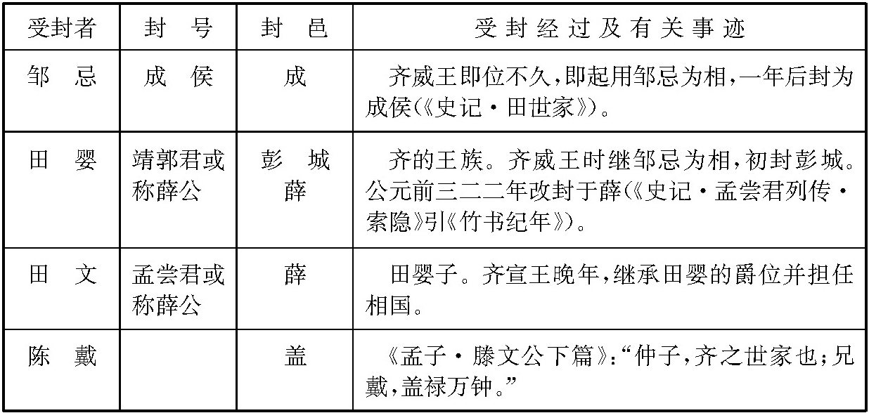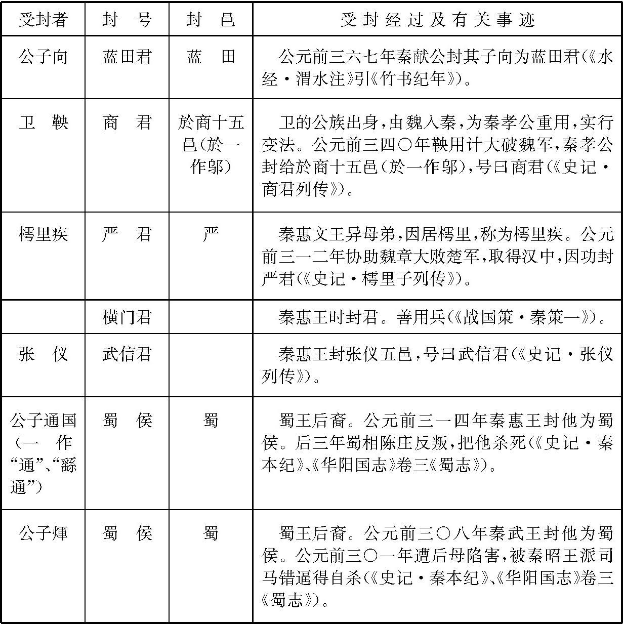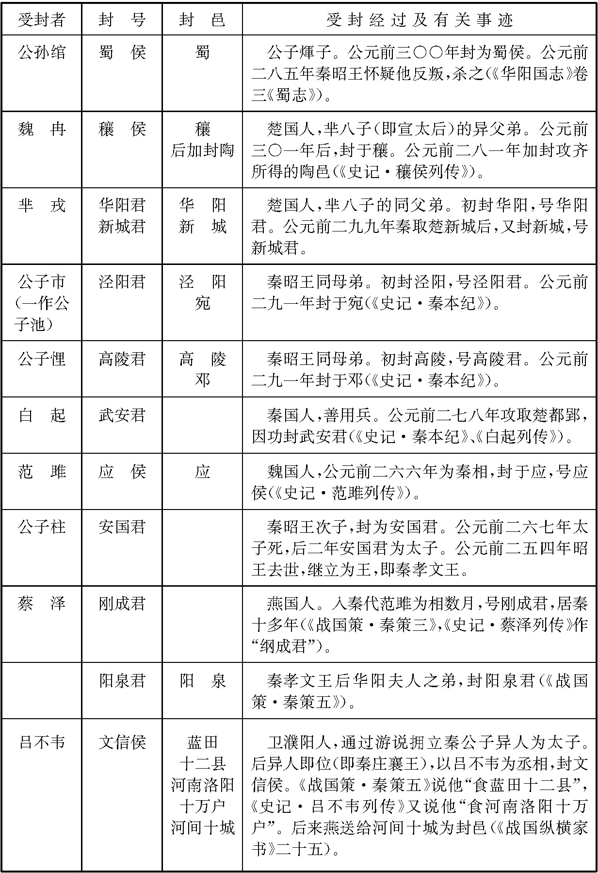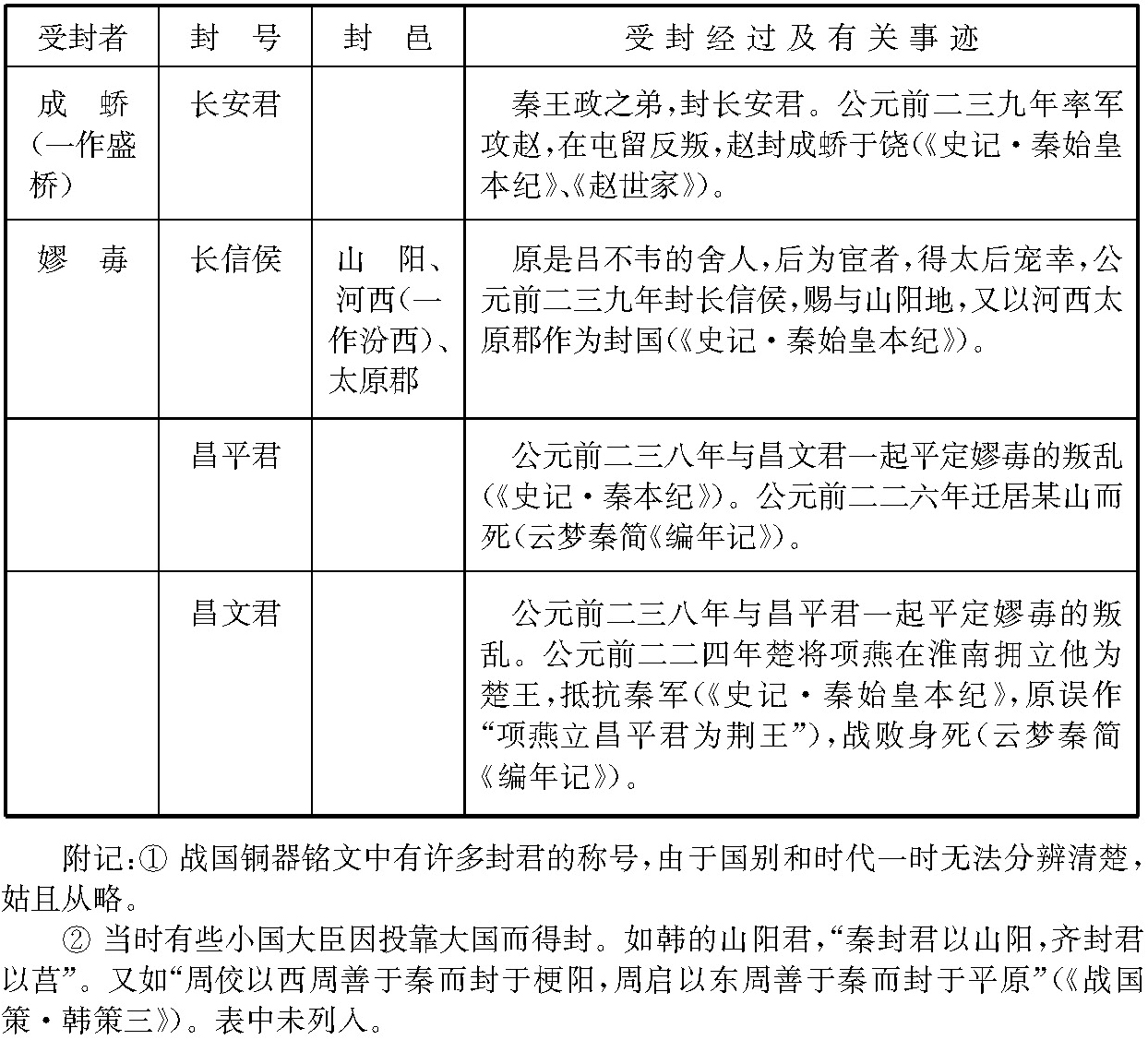战国时代各国的封君,由于史料不充分,我们所能了解的,比较零星。兹列表如下:
