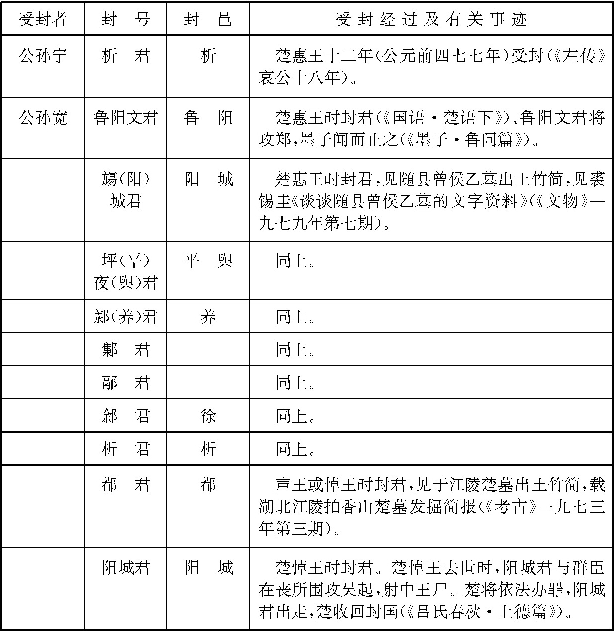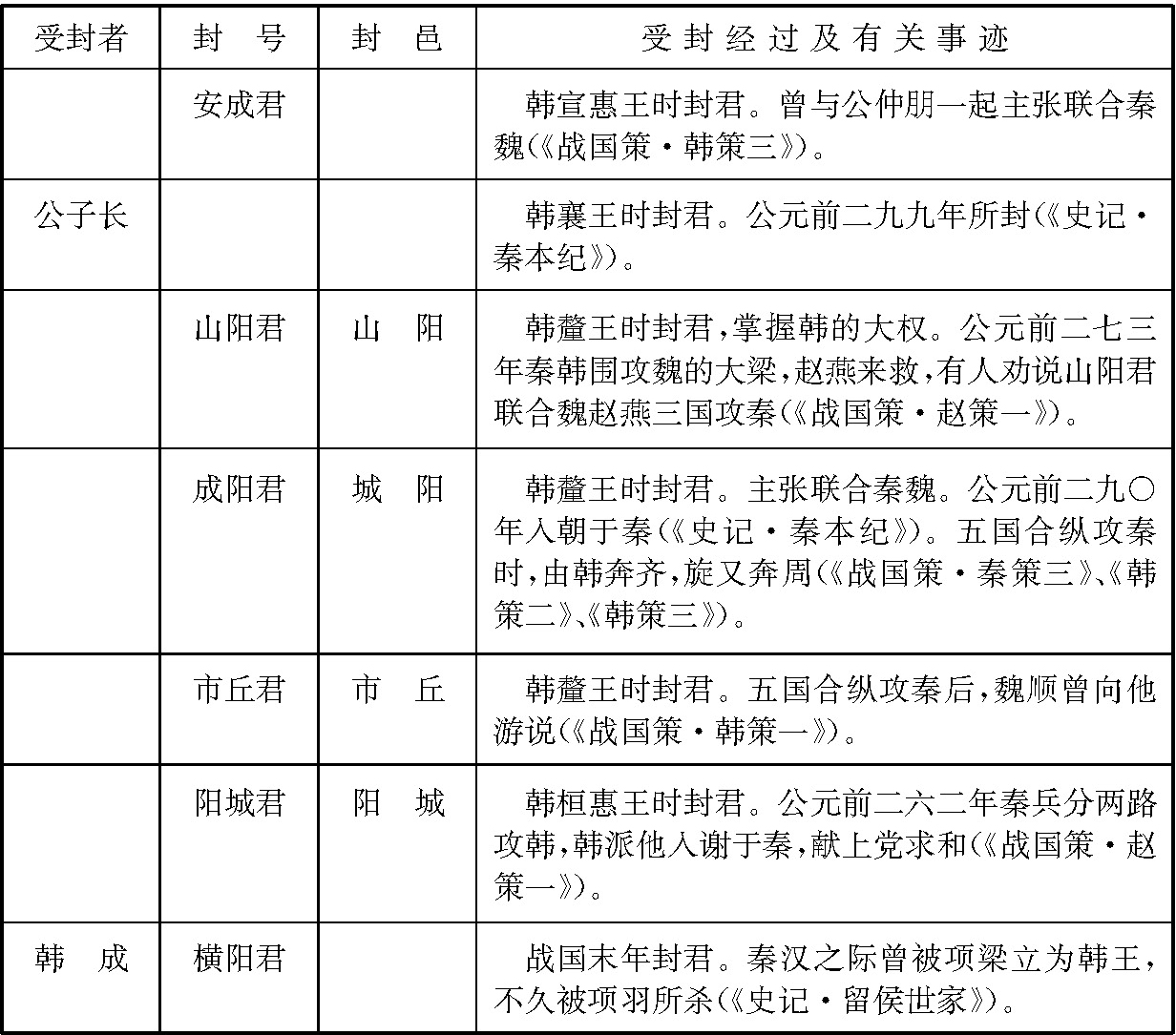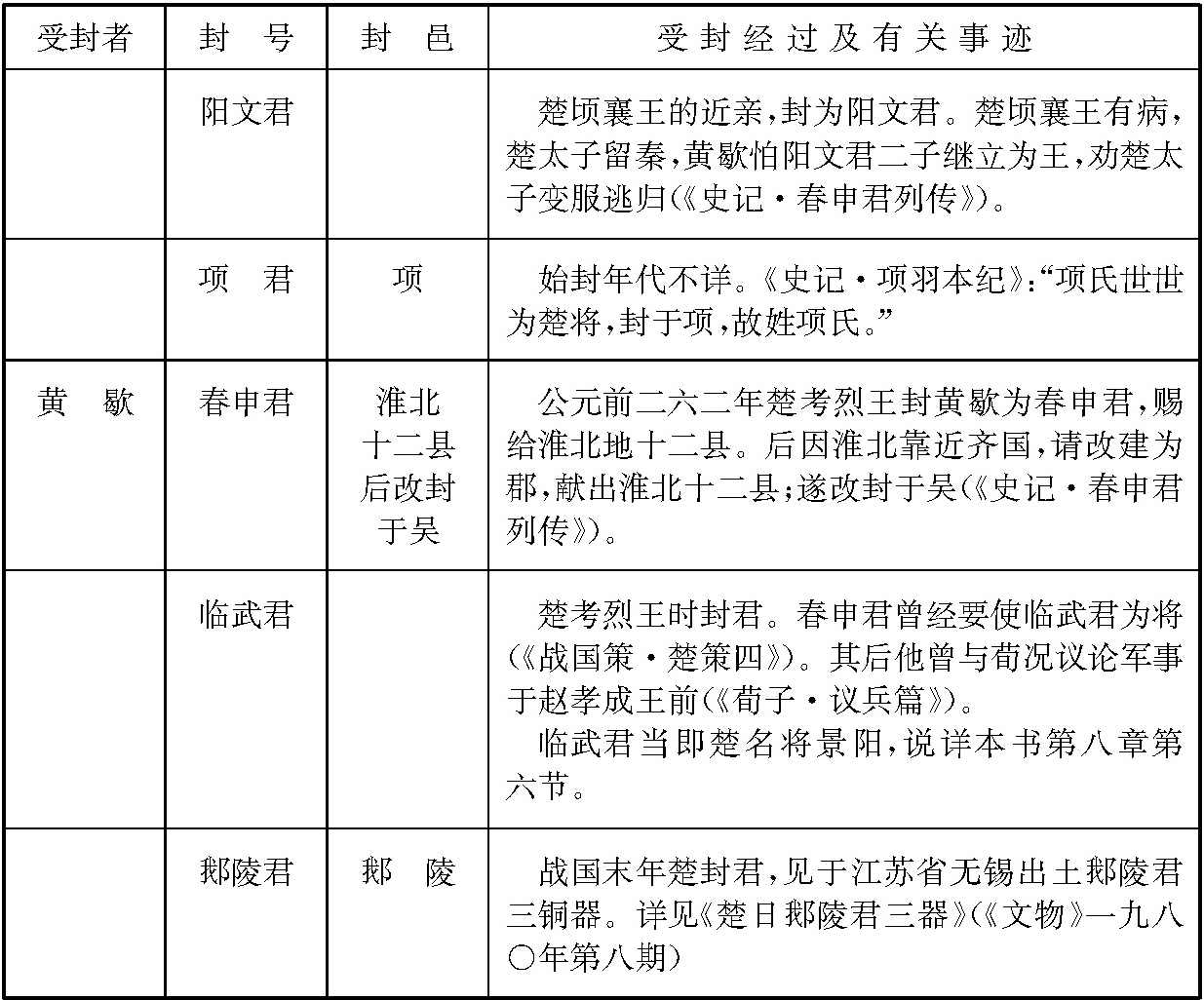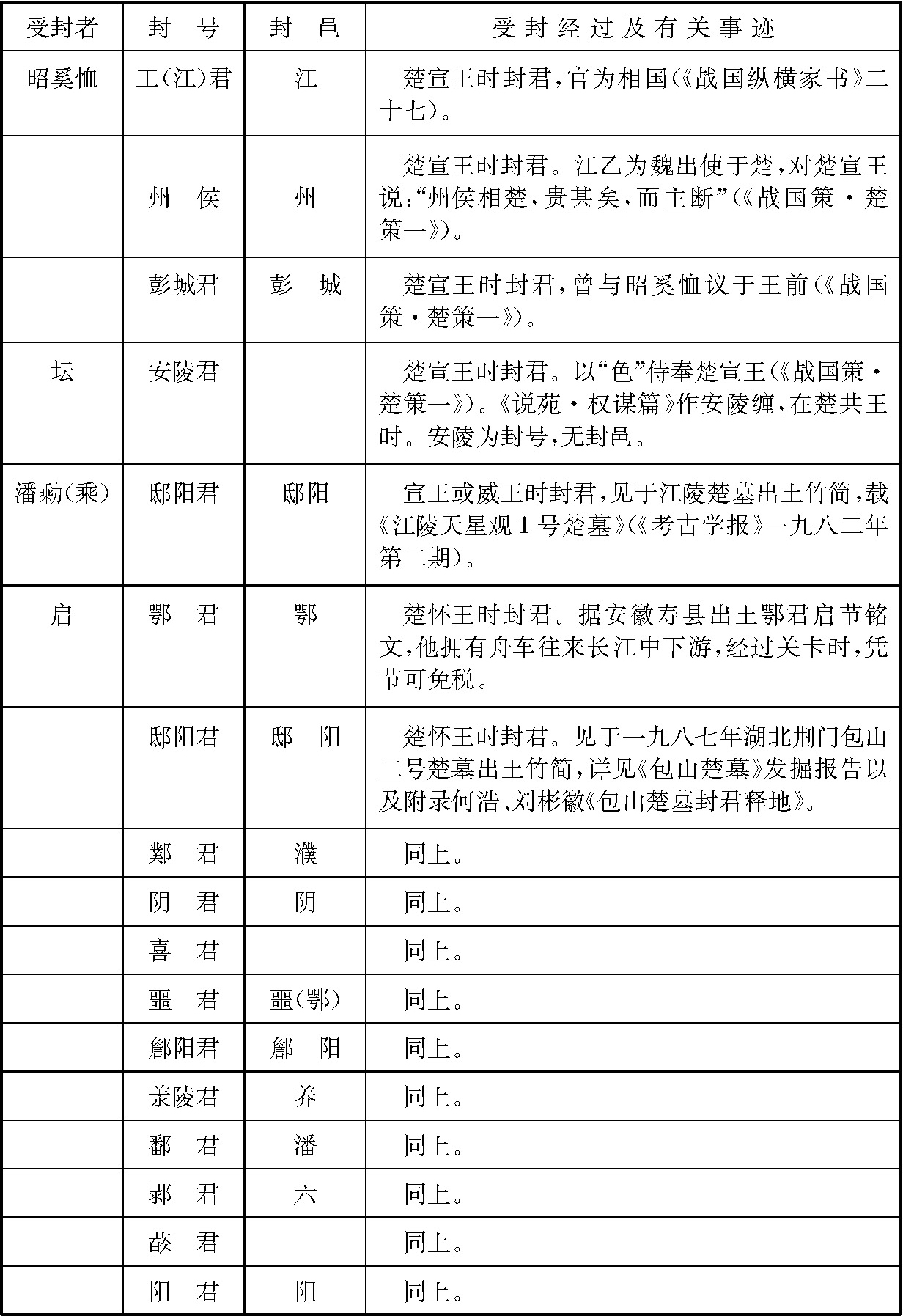 战国时代各国的封君,由于史料不充分,我们所能了解的,比较零星。兹列表如下: